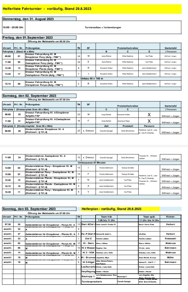31. August 2023 / Fahrsport / 2023, Fahrturnier, Helferliste / Von Jürgen Hobbie